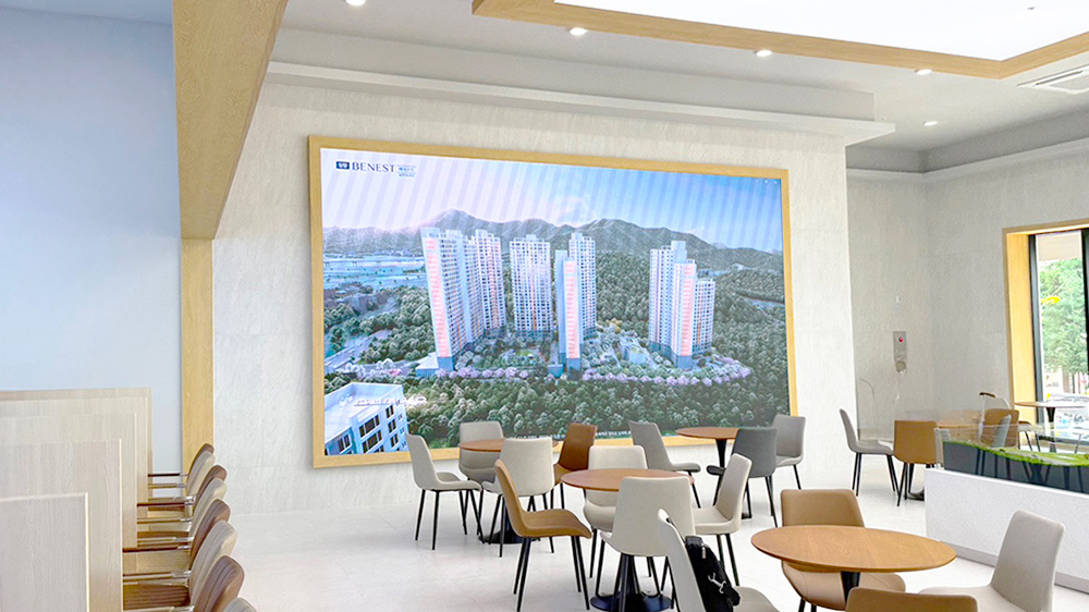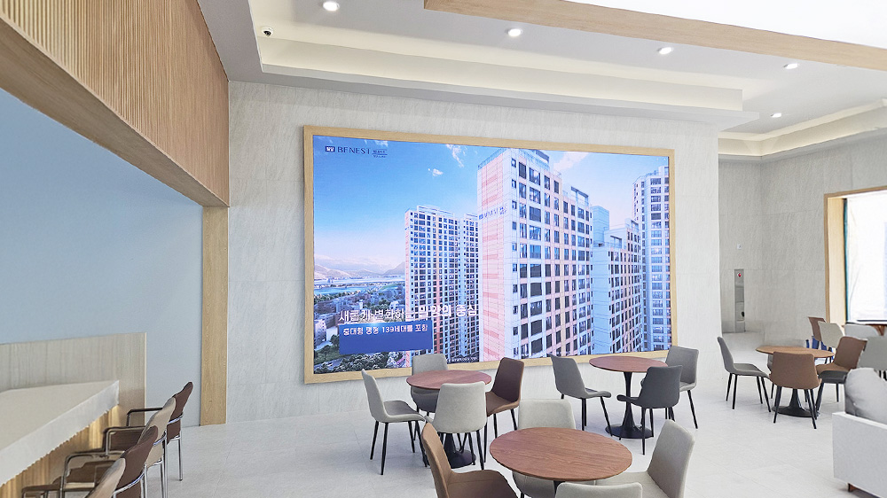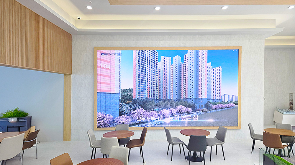 경상남도 밀양 모델하우스에 CPS P2.5 LED 전광판 디지털을 설치하였습니다. 이번 설치는 방문 고객에게 단순한 정보 전달을 넘어, 마치 전시장에 온 듯한 몰입감 있는 시각적 경험을 제공하는 데 초점을 맞췄습니다.