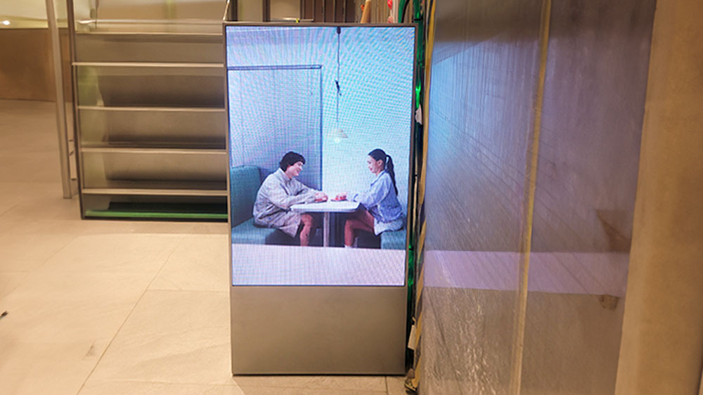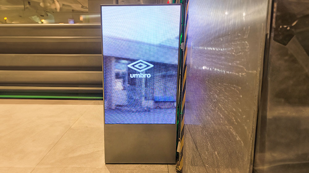 고객의 시선을 자연스럽게 유도하는 핵심 미디어 요소로 활용되는 설치 사례입니다.