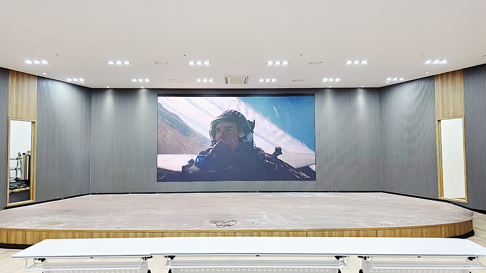 선명하게 보여줄 수 있어, 대회의실이 회의 + 홍보가 가능한 멀티 공간으로 변신했습니다.